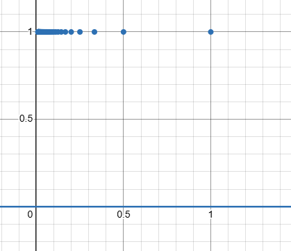 Är det en sådan funktion som ser ut att vara uppbyggda av punkt för punkt (liksom diskret eller hoppig) kanske för varje x, så har vi ett y-värde och samtidigt så går funktion mot ett tal (alltså gränsvärdet)... och vi kan ha oändligt många sådana punkter...