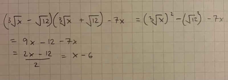 Jag ska förkorta uttrycket som du ser nedan. Nedan ser du även hur jag har förkortat det. Som du kan se har jag kommit fram till rätt svar som ska bli 2x -12 men jag undrar varför man inte kan fortsätta förkorta det så att det blir x - 6?