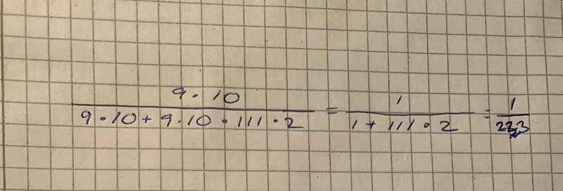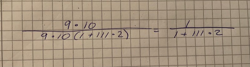 varför förkortas 9*10 i nämnaren till bara en 1?