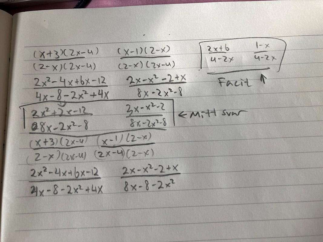 Jag fattar inte riktigt hur jag ska faktorisera nämnare :(