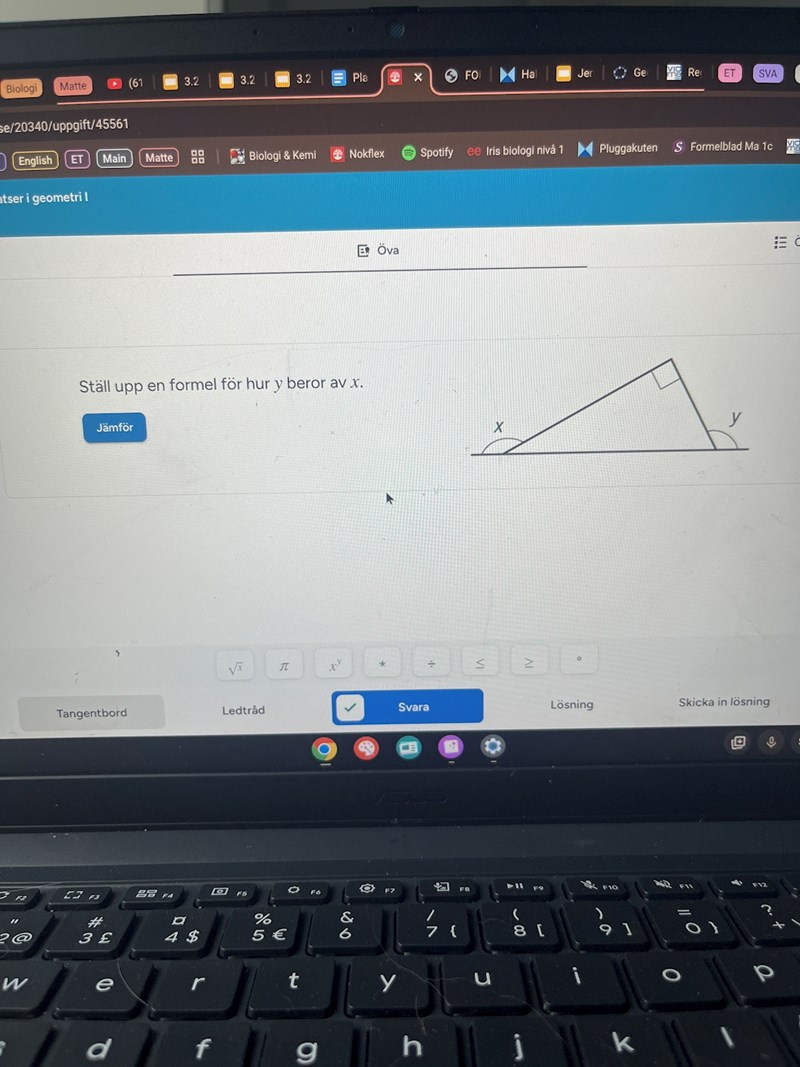 Hej, hur ska jag tänka här? Jag tänkte att man kunde lägga till vinklarna a och b men det hjälpte inte.