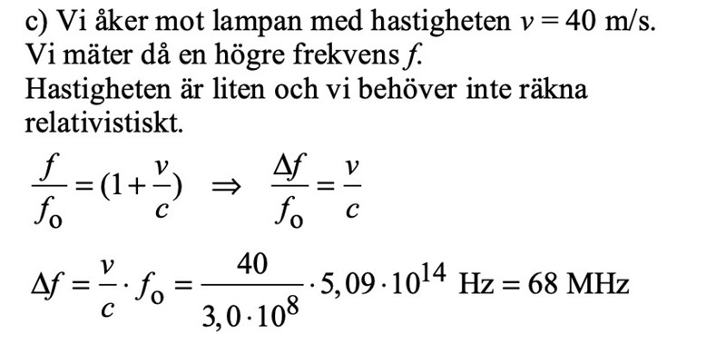 Hej stämmer formel ovan (från boken) eller ska F0 vara på nedre raden? i facit för en uppgift har dem f/f0 = (1+v/c) för att sedan multiplicera höger led med f0....