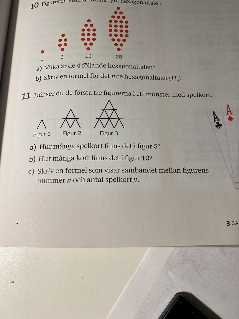 Nej det läggs ut mer kort per gång än bara 2. Gör som Dracaela sa, räkna ut hur många kort det finns mellan de 5 figurerna och räkna sedan ut hur stort "hoppet" är i mellan dem.