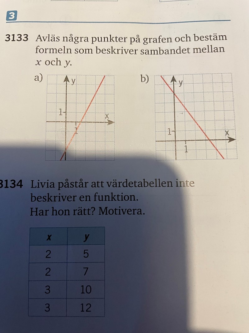 Hej, ska skriva en formel för sambandet mellan X och y. Fråga 3133 a)