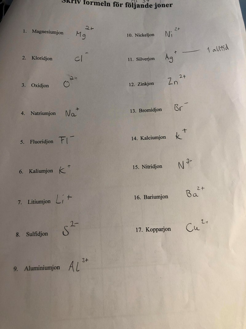 Jag ser att jag gjort tre fel, det är kalcium som ska stå Ca och Litium där det ska stå Li och flour ska vara F, men bortsett från det finns det något annat?