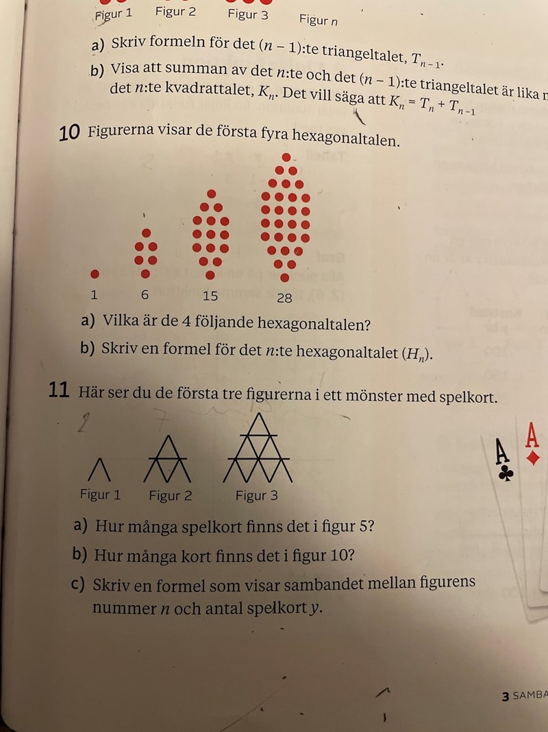 Toppen, nu kan du uttrycka antalet kort för figur 1-4 till exempel mha av din formel.