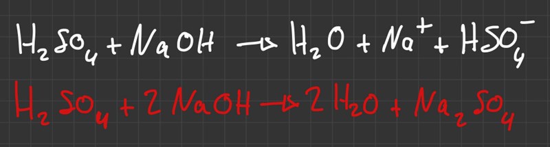 Du behöver lära dig att svavelsyra H2SO4 kan avge 2 vätejoner.
