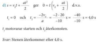 De löser ekvationen med nollproduktmetoden. Eftersom den där produkten är noll, så måste någon av faktorerna vara noll. Den ena faktorn är t, så en lösning kommer ur t=0. Den andra faktorn är , så den andra lösningen kommer genom att sätta detta lika med noll: