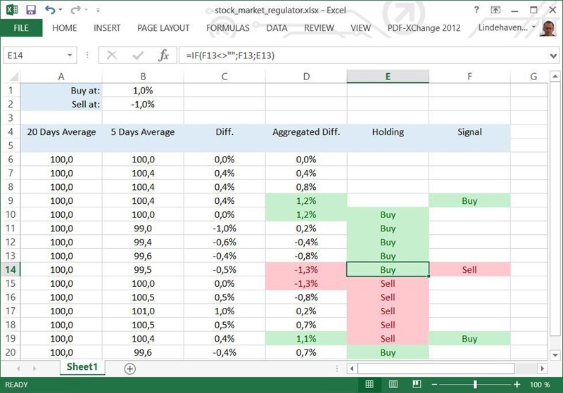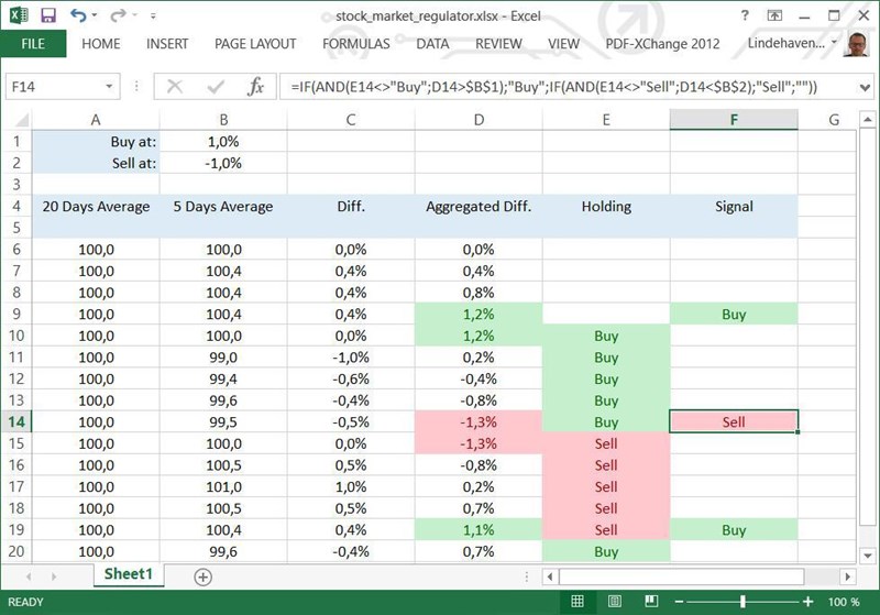 Och procentnivåerna för köp/sälj kan läggas i egna celler som används i formeln. Då kan köp/sälj-regulatorn finjusteras. För detta är en regulator.