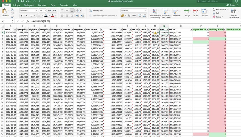 Det som jag går efter i beräkningarna är kolonn E, "Closeprice"