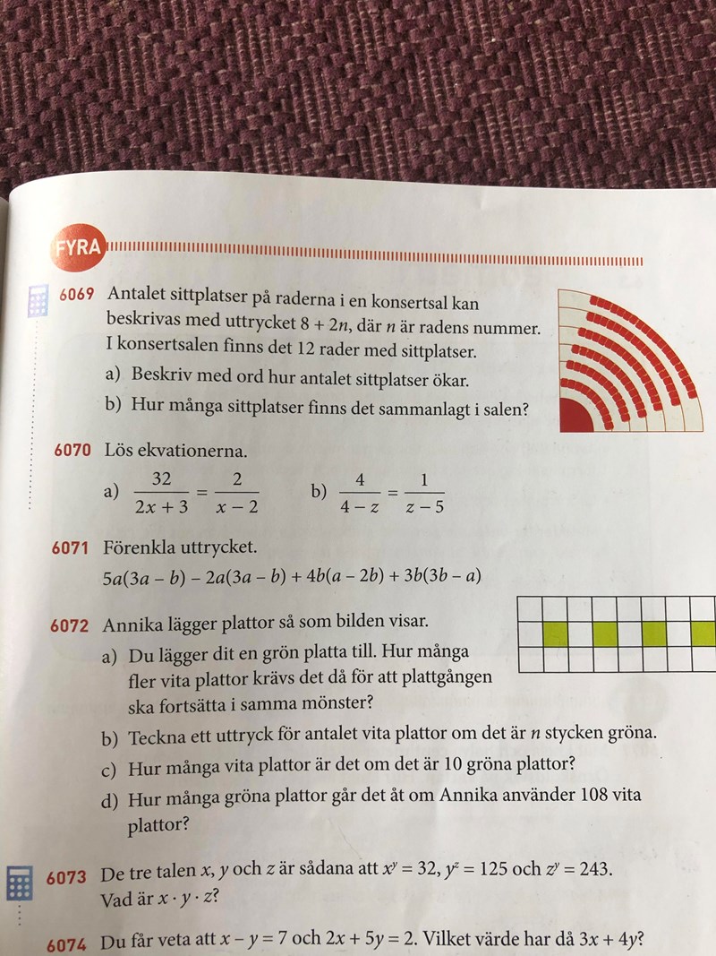 Kan du lista ut hur du ska beräkna antalet sittplatser på det här sättet?