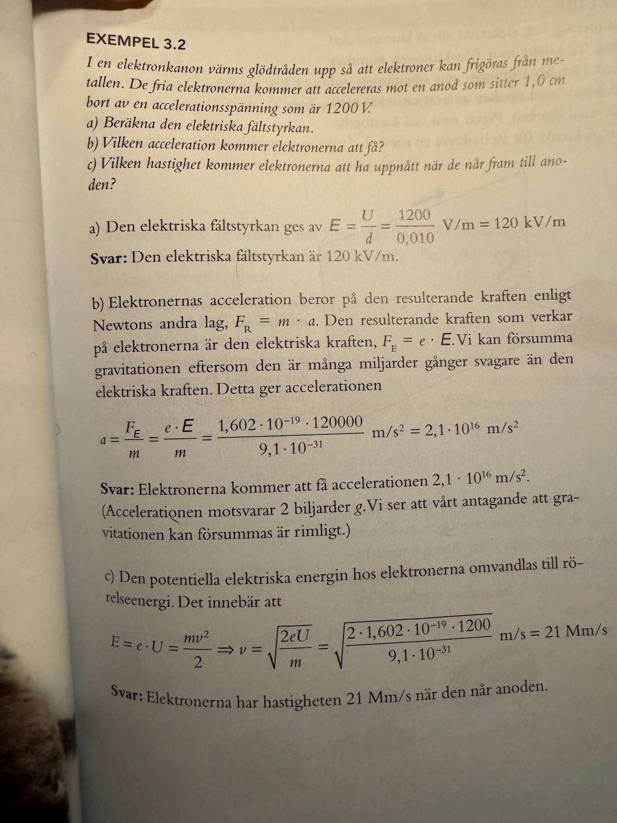 Varför kan vi skriva F = e · E ? vad är E i formeln? Samt om jag gör enhetsanalys får jag in m/s^2? inte m/s^2? .