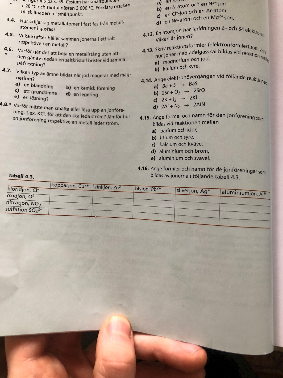 Längst ner i uppgift 4.16 så ska man skriva formel med Nitratjon och Sulfatjon. Jag skrev fel svar.