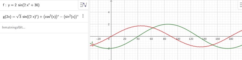 Saknas det ett gradtecken efter 30 i f? Borde inte gradtecknen vara efter x i g istället för utanför parenteserna?