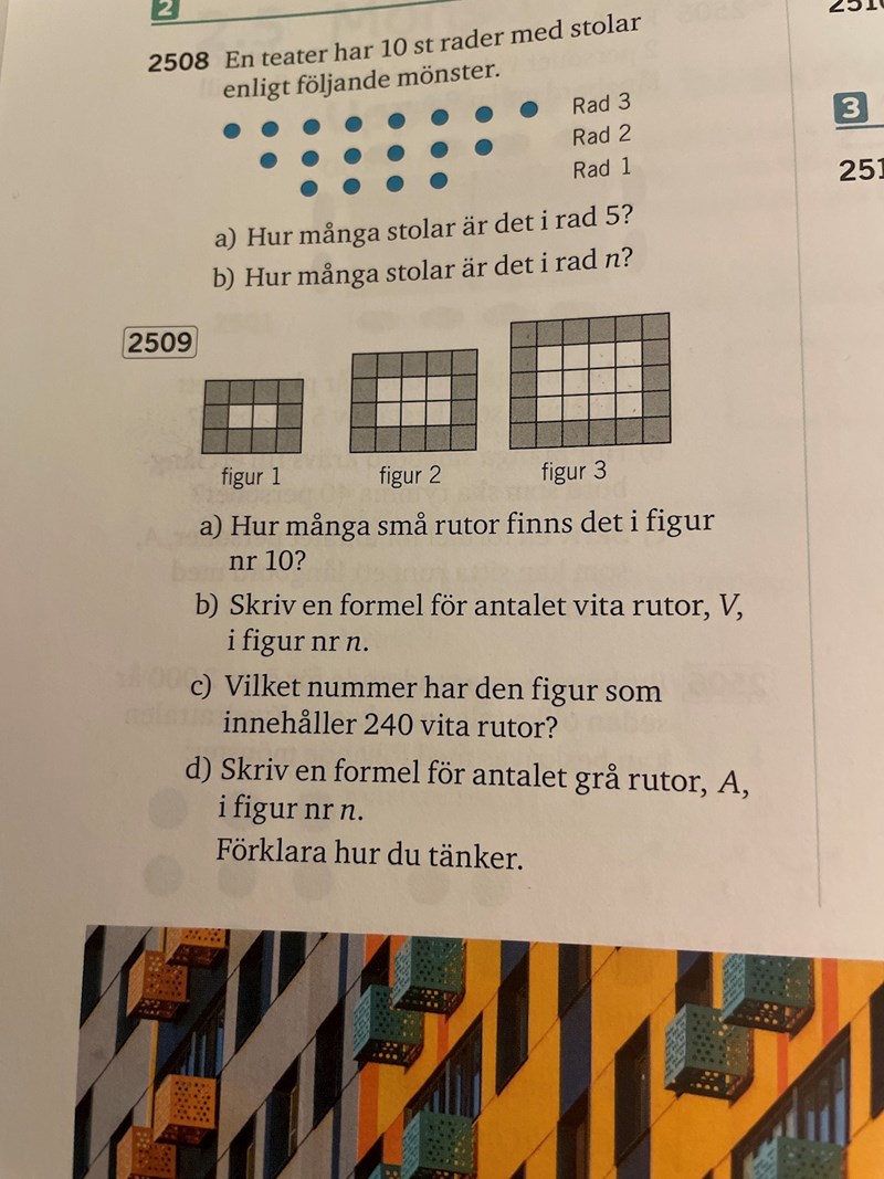 Behöver hjälp med b) och c). Fattar inte riktigt hur jag ska komma fram till en formel. Min lärare sa att testa sig fram men det finns tusen olika grejer att göra. Vet inte vart jag ska börja riktigt.