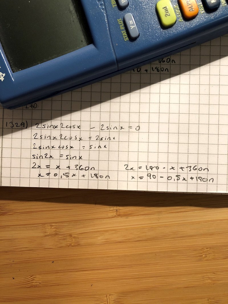 lösn2: 2x = 180-x + n*360 => x = 180/3 + n*120