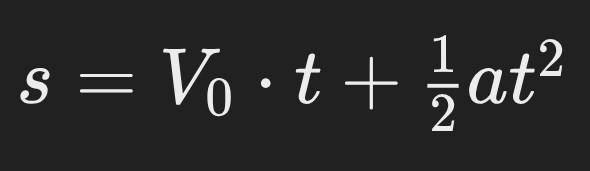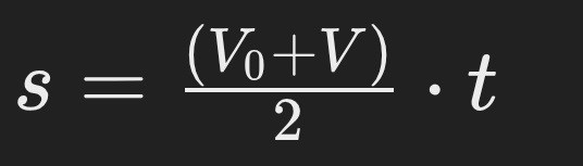 Formeln kan man använda när man vet hastigheten på slutet av streckan. Det är då hastigheternas medelvärde multiplicerat med tid och den stämmer exakt när hastigheten varierar linjärt med tid, uniformt accelererad rörelse, alltså konstant acceleration.