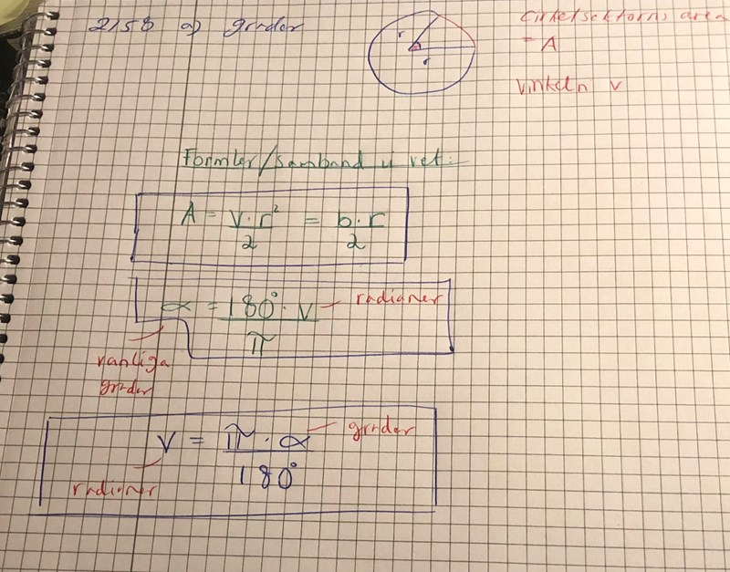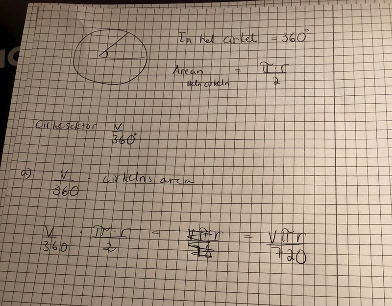 Aha, oj såg fel. Men när jag tar v/360 • cirkelns area, räknar jag inte då på andelen på vinkeln i ”tårtbotten/sektorn i förhållande till hela cirkeln?
