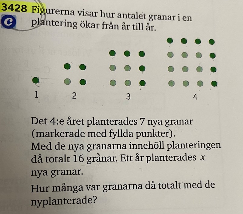 Ha en fin dag skrev:Smaragdalena skrev:Försök (med hjälp av de bilder du har) att klura ut hur många nya granar det planteras varje år. Hittar du något mönster?