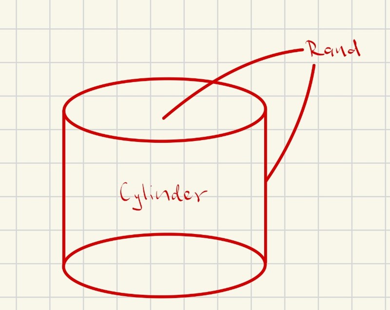 Cylindern har förstås en randyta. Tänk dig en Coca-Cola-burk, den har förstås en randyta.
