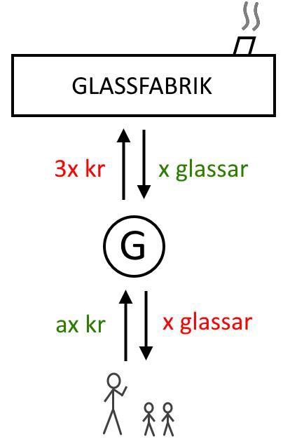 Men varje glass kostar henne 3 kr att göra (eller köpa in, från nån annan som gjort den). Totalt har hon alltså betalt 3x kr för de x glassar hon säljer.