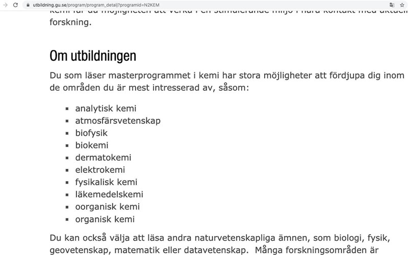 Hej jag och några vänner har argumenterat om vilket master program inom kemi är bäst. Här är alternativen