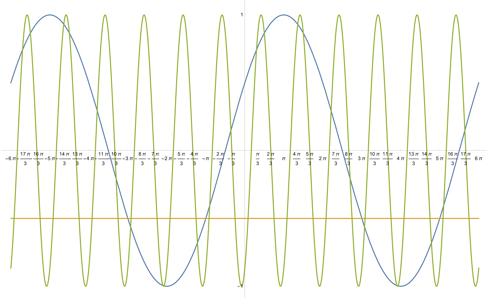 Ingen av de visar cos? Jag försöker förstå hur många grader varje ruta i frpgan har, fick det till 30 grader per ruta, och att den nya grafen har förflyttat sog 2 steg från den ursprunglinga, alltså motsvarar det 60 grader. Jag har verkat missuppfatta något med hur de delar in graderna per ruta och det är det som jag vill förstså, för jag vet ej hur de får det till 120 grader istället för 60 grader. Jag rick det till 30 grader per ruta genom att jag vet att en period på den röda grafen är 180 grader då markerar jag ut det, och det är 6 rutor fram till 180 grader, alltså 30 per ruta