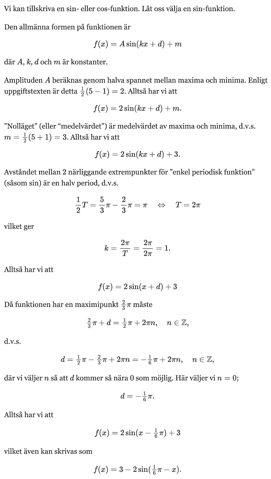 (1) Du har tänkt att sin x har max för x = pi, men det ska vara x = pi/2.
