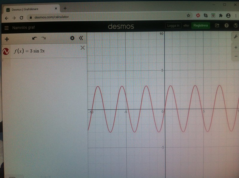 Är du med på att kurvan i figuren rimligen borde vara y = -3cos(2x)? I så fall har vi, med utnyttjande av kända räkneregler, att