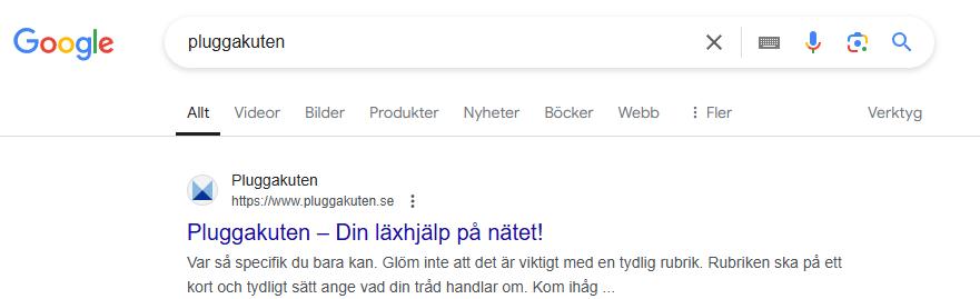 Google är dock inte begränsade av denna utan sätter vilken text den tycker är lämplig. Google tycker uppenbarligen inte texten är rätt. Av någon outrgrundlig anledning så har den istället valt en bit text mitt i ett stycke ur den utfällbara texten "läs detta innan du postar" på startsidan. Något av ett mysterium får man ändå säga. Den som kan komma på varför får en guldstjärna.