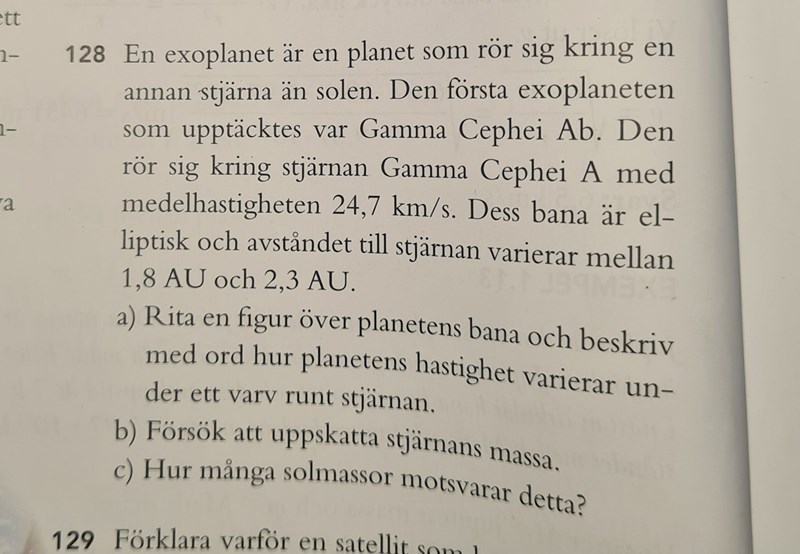 Någon som kan hjälpa mig lösa deluppgift b) i denna uppgift? Befintliga formler som gravitationslagen och en av formlerna för centripetalkraften gäller väl bara för vårt solsystem, men inte för exoplaneter?
