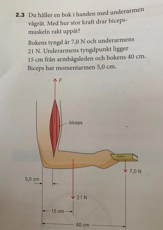 Det råder kraftjämvikt, men det finns fler krafter inblandade. Leden i armbågen (och benen inuti armen) tar upp en kraft. Den kraften kommer inte med i beräkningarna, för dess moment runt armbågsleden är noll.