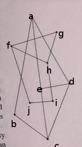 Här ser man, mer eller mindre lätt, att a-e går att nå från varandra men inte kan nå f-j. Så a-e är en komponent, och f-j är den andra. Om man bygger hela grafen av ståltråd kan man lyfta bort f-j och lägga den bredvid a-e (om man inte har slingrat in trådarna under och över varandra, men grafteorin säger inget om den saken - det är en sak för t.ex. knutteori).