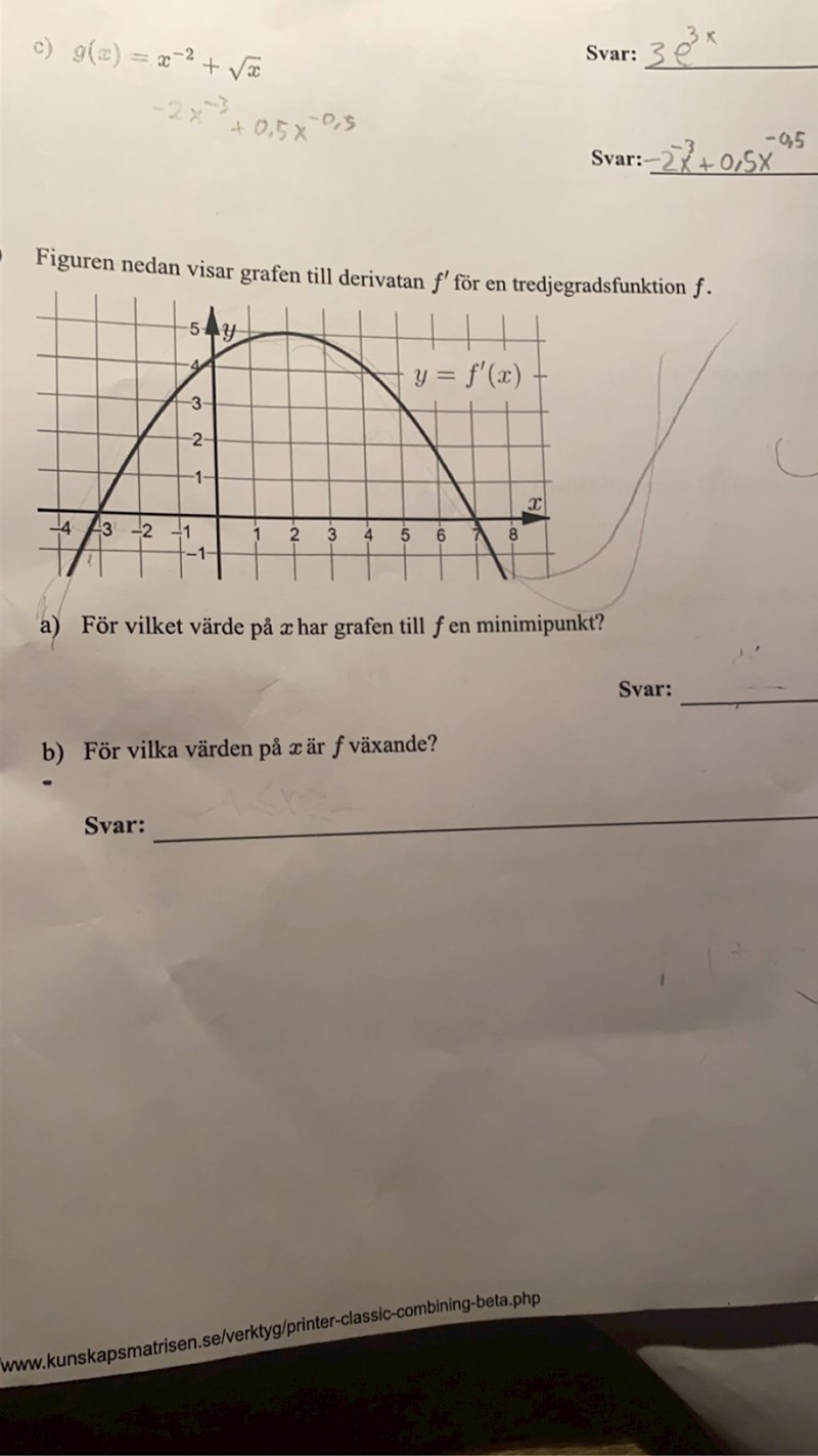 Men för vilket värde på x har grafen till en minimipunkt då ? Hur ska jag tänka