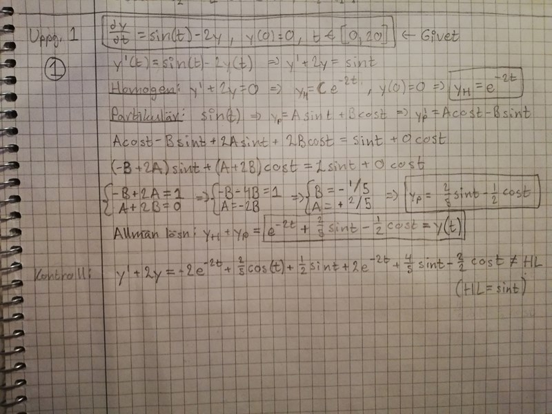 Har en differentialekvation som jag försökt lösa ett tag men när jag kontrollerar det svar som jag fått så stämmer det inte överränns med den givna funktionen. Vad gör jag för fel?