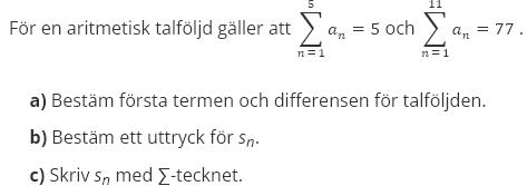 Kan du sedan skapa två ekvationer i a1 och d så kan du lösa detta ekvationssystem