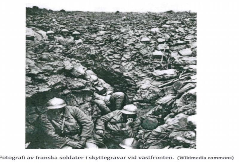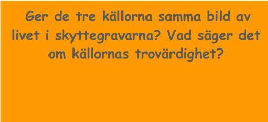 Jag har en uppgift att granska 1 bild och två texter och sedan skriva om dem alla tre ger samma bild om livet i skyttegravarna.
