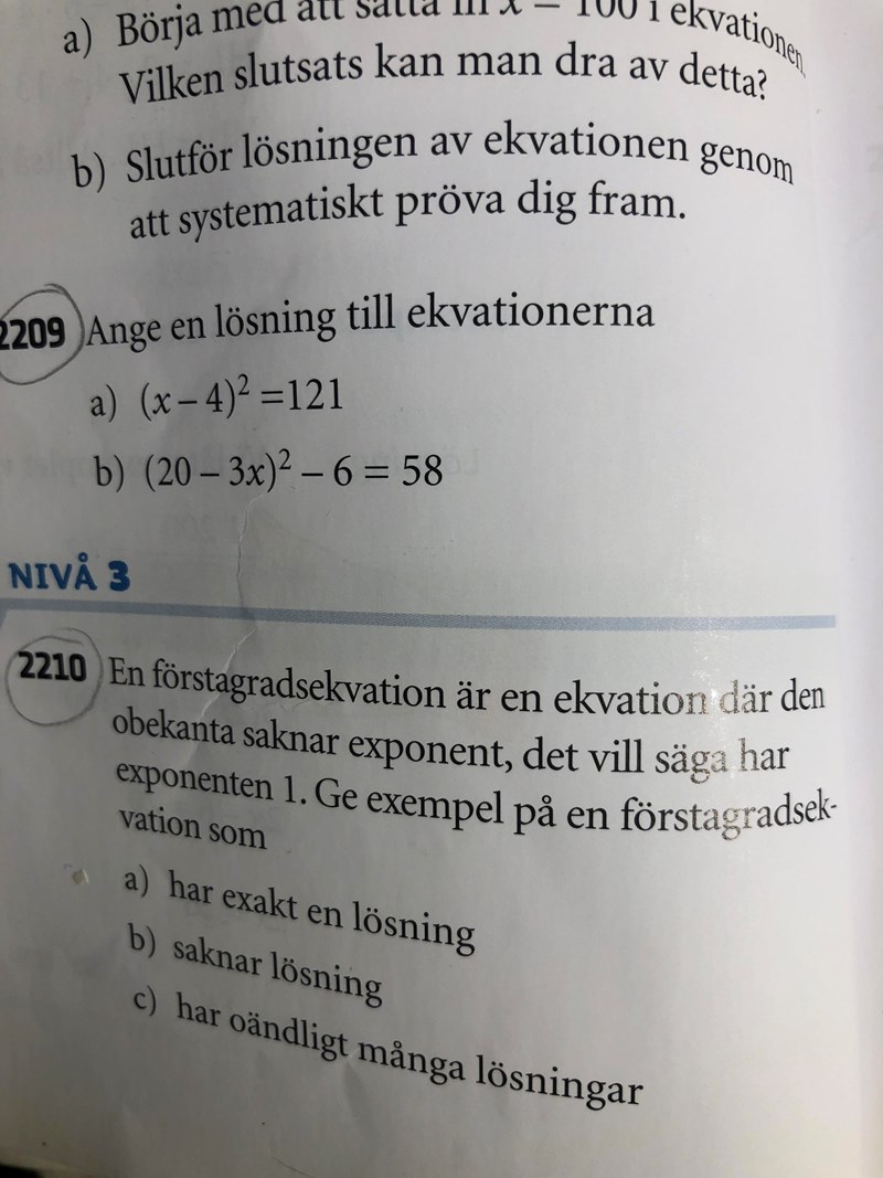 Jag behöver ha en förklaring till vad som menas med ”Ge exempel på en förstagradsekvation” vad betyder det?