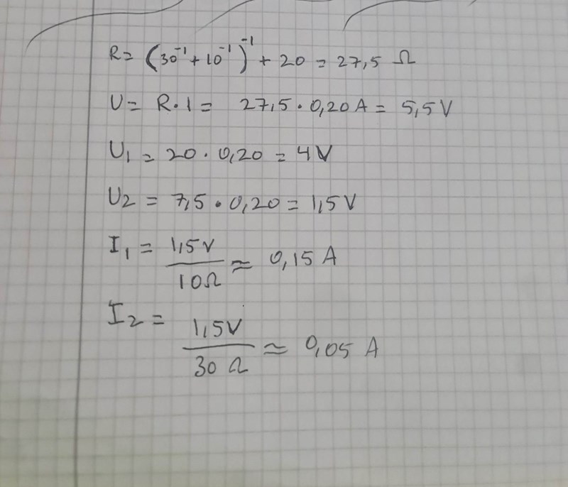 U= R*I U=20*0,20 = 4V