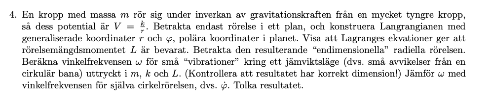 -k/r2 = L2/(mr3). Eftersom HL är positivt så kan vi ha likhet endast om k är negativt, i annat fall så blir VL negativt.
