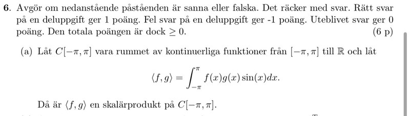 Jag resonerade som så att det inte var en skalärprodukt eftersom man stoppar in tre funktioner istället för två, nämligen g(x), f(x) och sin(x).