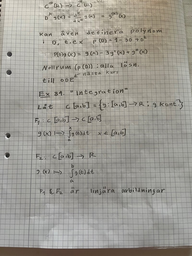 Hej! Jag tittar igenon anteckningar och har insett att jag inte förstår denna notation: låt C[a,b] = {g: [a,b] -> R: g kontinuerlig}. Någonstans i bakhuvudet har jag för mig att det betyder kontinuerlig funktion i intervallet a till b? Vad betyder {g: [a,b] -> R: g kontinuerlig} i så fall? Notationen dyker också upp i denna uppgift: