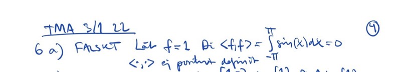 För ett sådant val av två funktioner får man att , vilket strider mot kravet att skalärprodukten är positivt definit. (Man ska få ett positivt tal när nollskilda sätts in i skalärprodukten.)