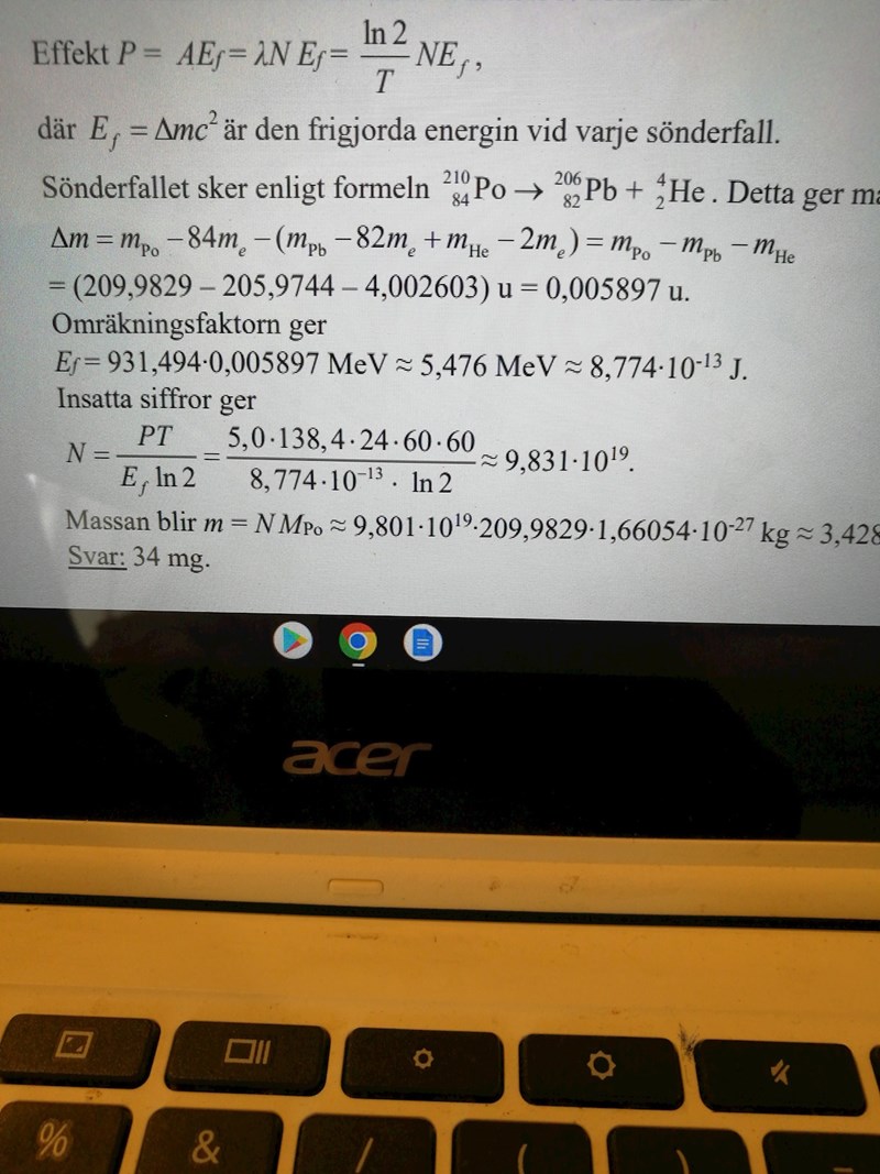 Smaragdalena skrev:Det är alltså aktiviteten som är lika med . Effekten har jag beskrivit i #4.