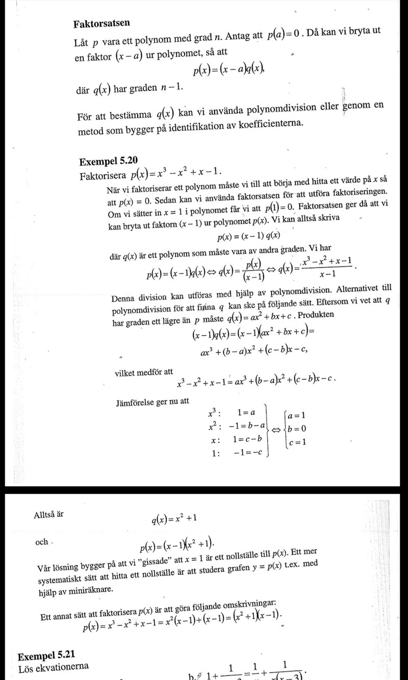 Laguna skrev:Det är bara idé att prova de heltal som är faktorer i konstanttermen (om högsta gradens term har koefficienten 1, som här).