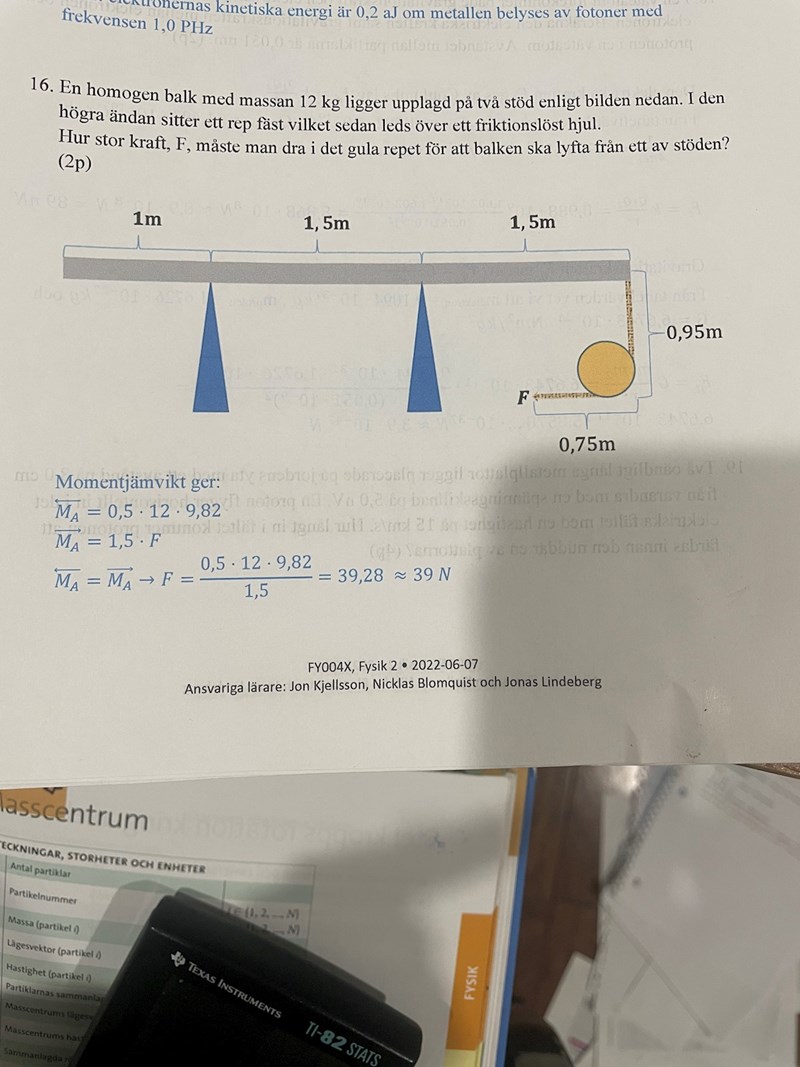 Och inte räknat ut var balkens tyngdpunkt ligger?