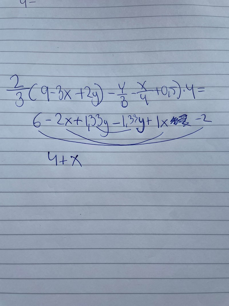 2/3(9-3x+2y)-(y/3-x/4+0,5)•4