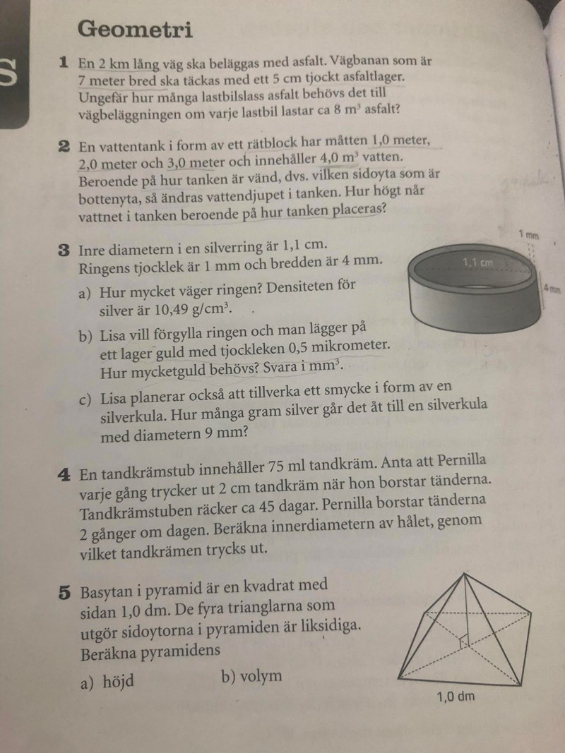 Bra! Hur stor omkrets har ringen (på utsidan)? Om du "vecklar ut" yttersidan, får du då en rektangel med höjden 4 mm och längden av denna omkrets. Hur stor area har den?