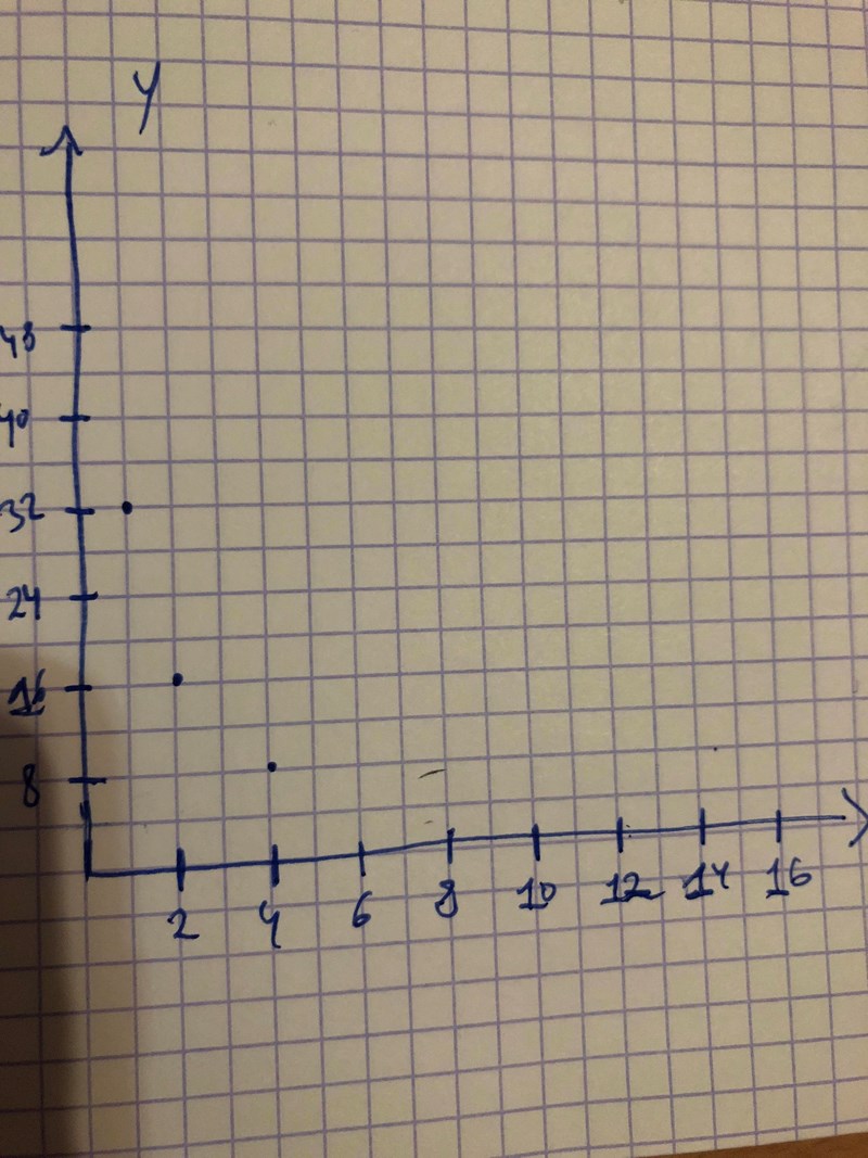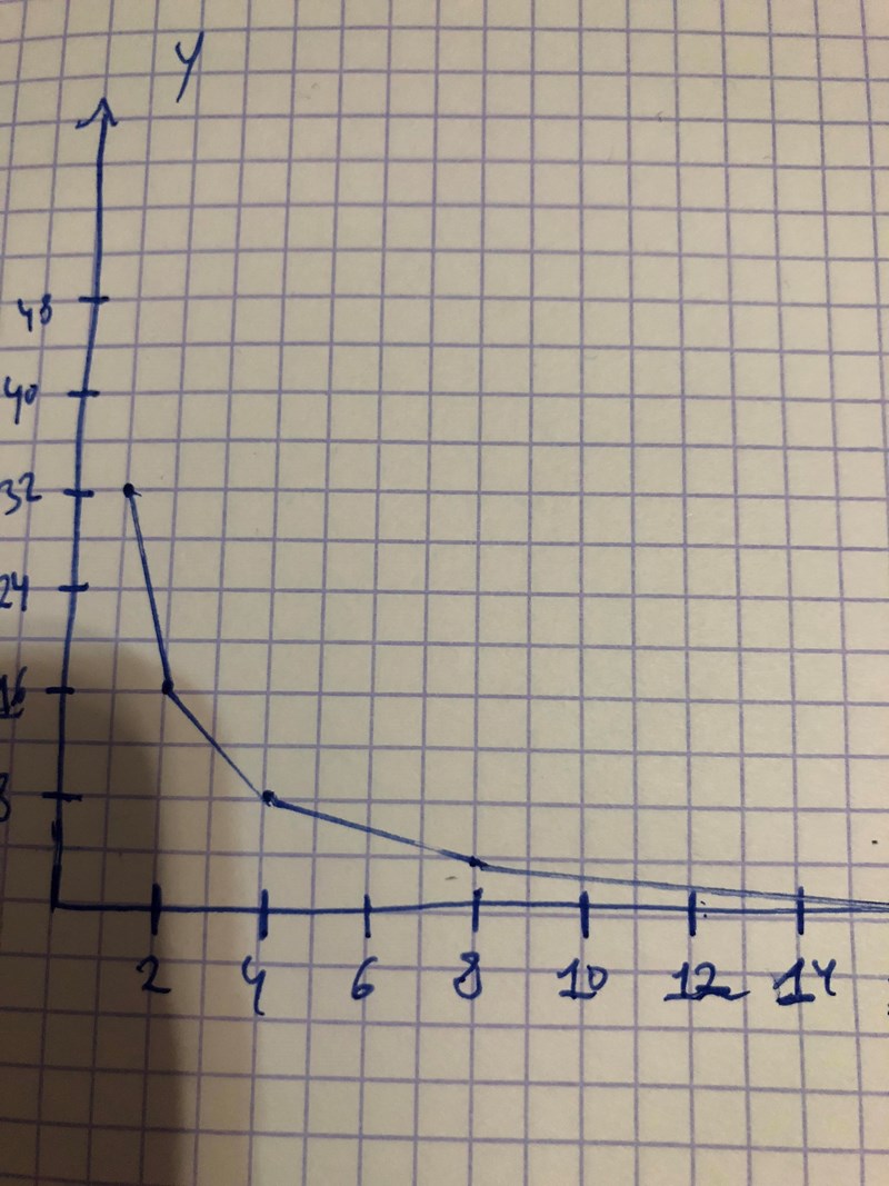 Räkna ut y-värdena när x = 1, 2, 4, 8, 16, 32. Pricka in värdena i din graf och se efter om (och var) du behöver fler punkter.
