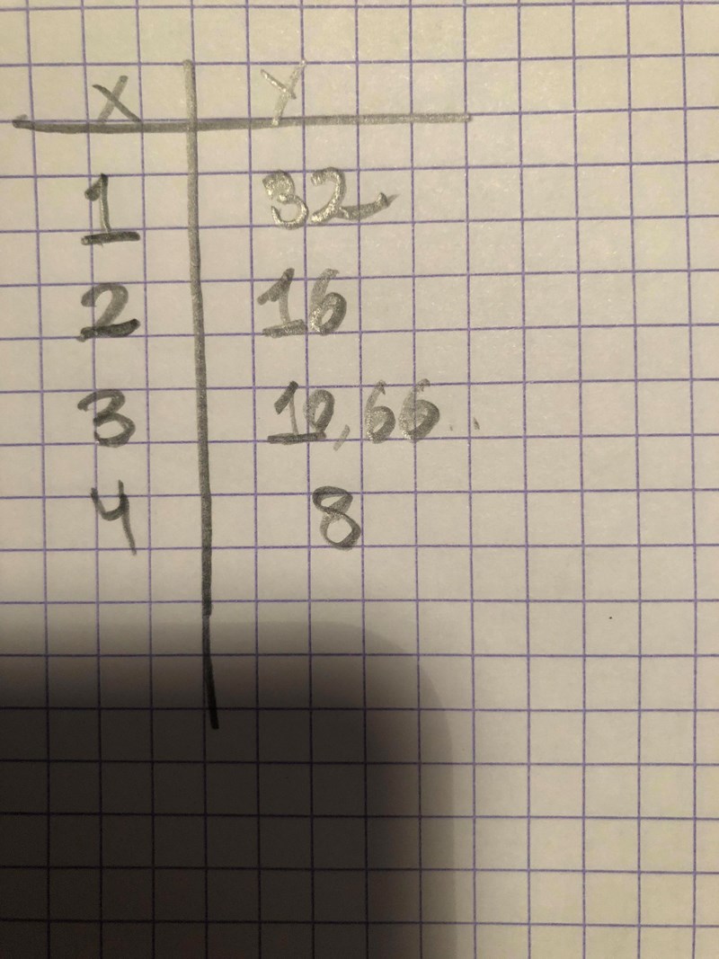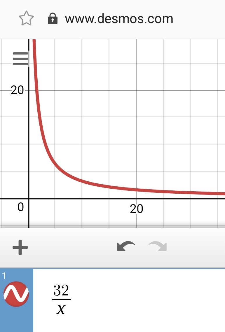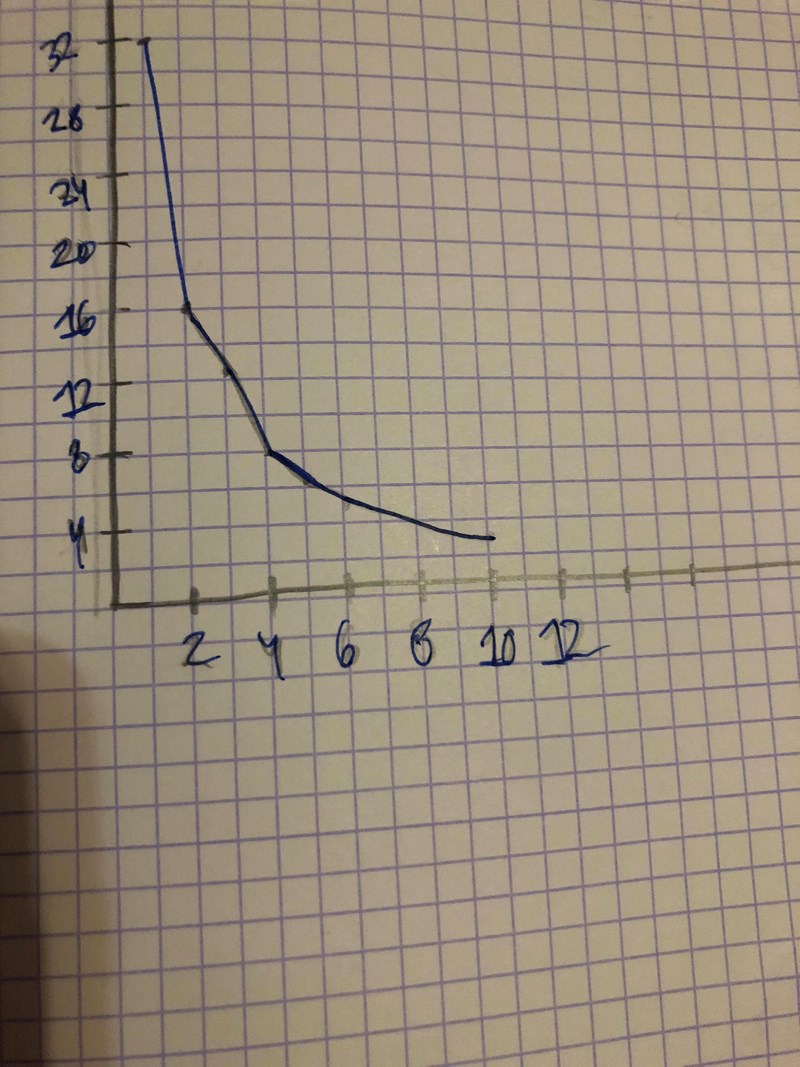 Det samband som gäller här, nämligen y = 32/x är inte ett linjärt samband.